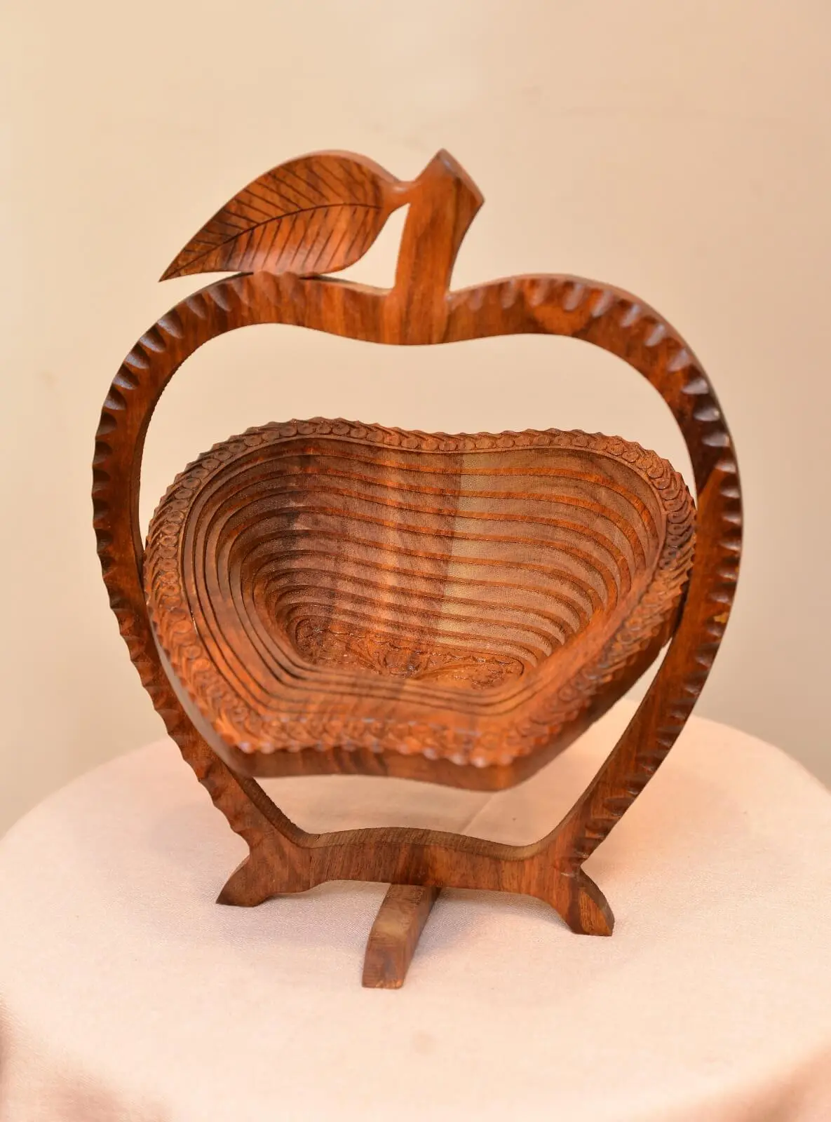 Beautifully carved from quality wood, featuring a unique apple-shaped frame that adds a playful yet elegant touch.