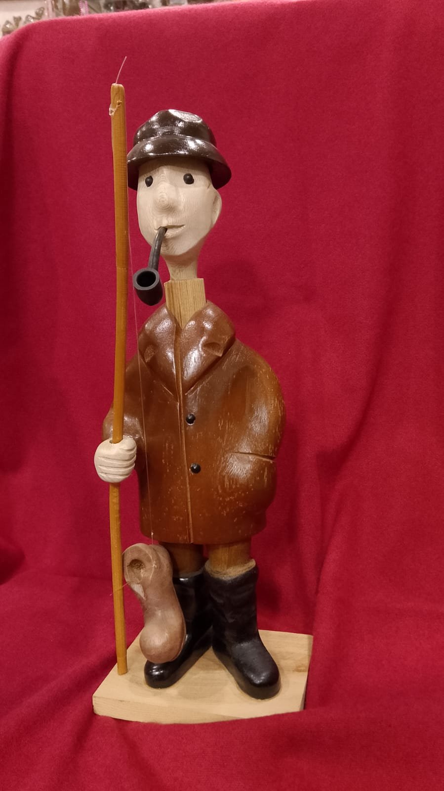A detailed handmade figurine capturing the timeless spirit of a fisherman.